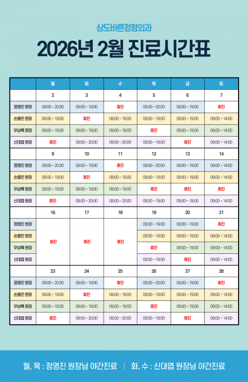 정형외과와 재활의학과 전문의 4인이 협력하여 빠르고 종합적인 진료를 제공합니다.