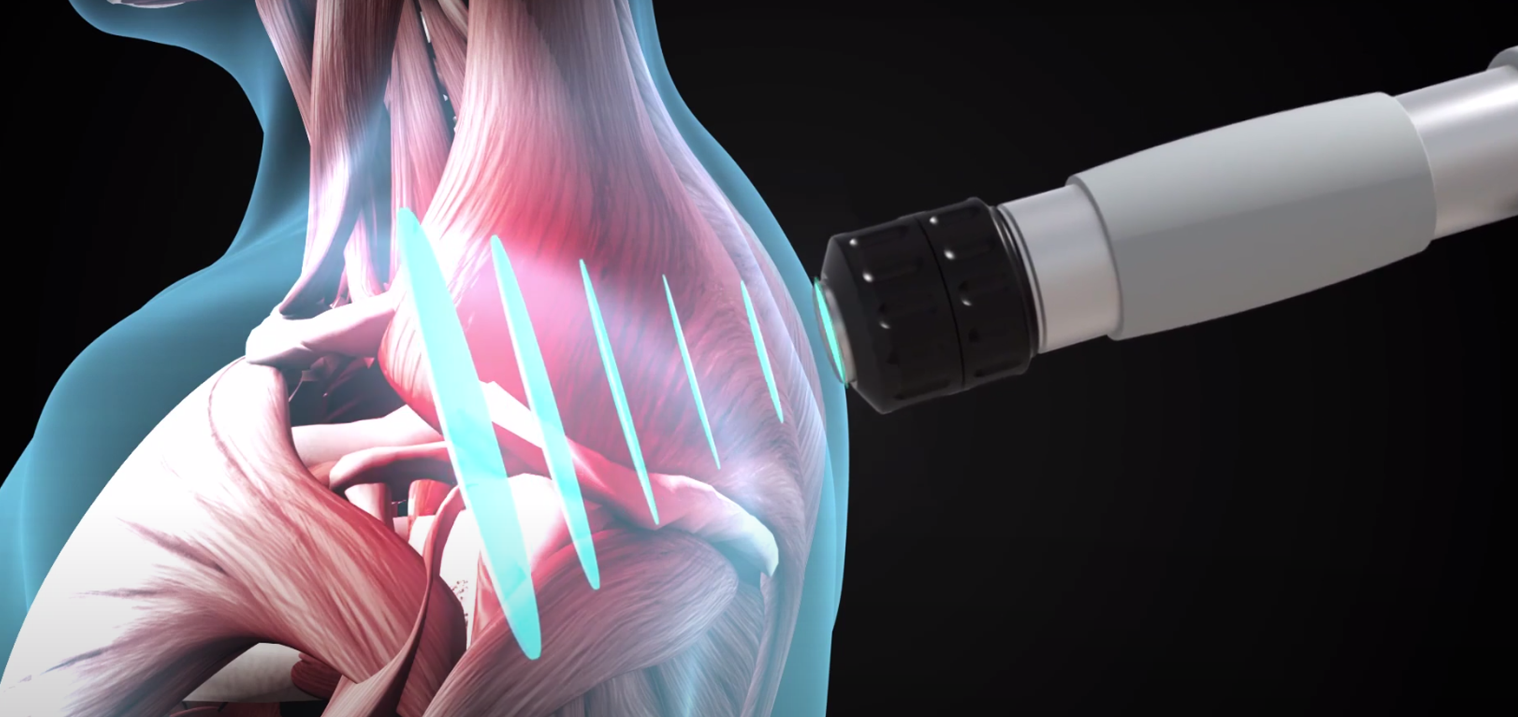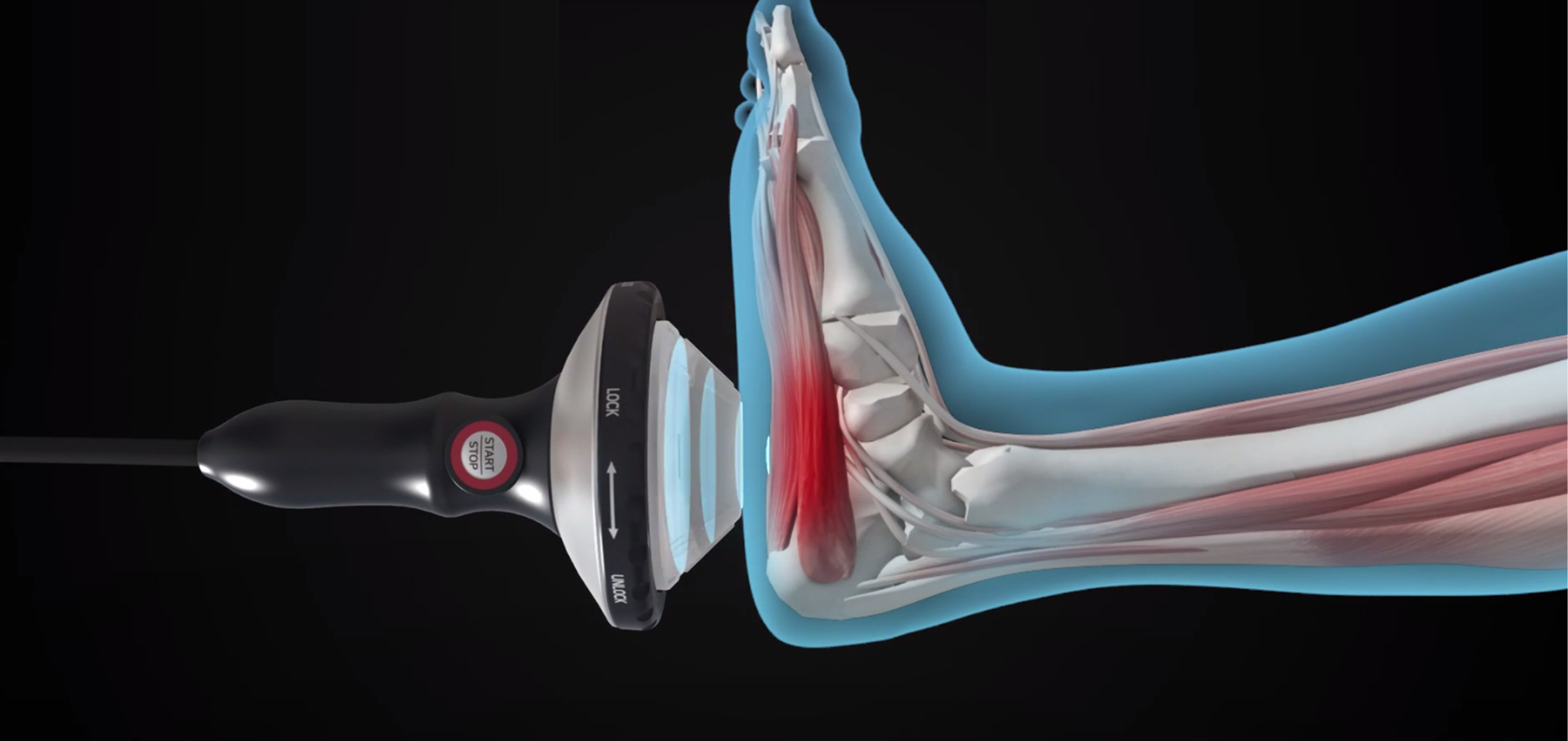 파장을 병변 부위 한 지점에 집중시키기 때문에 관절의 심부까지 파장을 보낼 수 있습니다. 주로 관절과 뼈 돌출부와 같은 국소부위에 적용합니다.